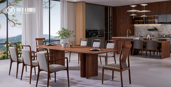 選擇美升娜家具北美黑胡桃木,不僅是選擇一種材質(zhì),更是選擇一種生活方式。在這里,木材的溫潤(rùn)與煙火的熱情交織,讓平凡的日常升華為值得品味的藝術(shù)。無(wú)論是獨(dú)自享受烹飪的寧?kù)o,還是與親友分享美食的歡愉,這個(gè)空間都能讓生活綻放出最動(dòng)人的光彩。