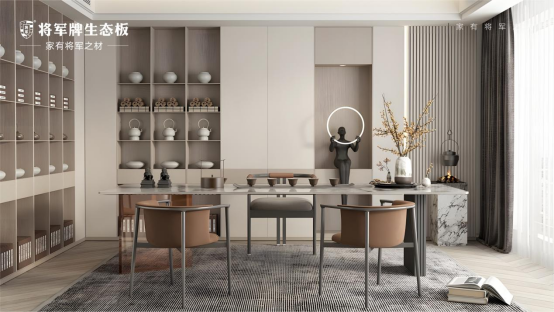 選擇將軍牌生態(tài)板,便是選擇了一種與時(shí)光溫柔相處的方式。在這里,每一道木紋都在生長,每一處弧度都在沉淀,最終成就的,是一個(gè)在歲月里慢慢暈染出生活溫度,卻始終保持著初見時(shí)那份整潔與雅致的家——這,便是長期主義美學(xué)最本真的模樣。