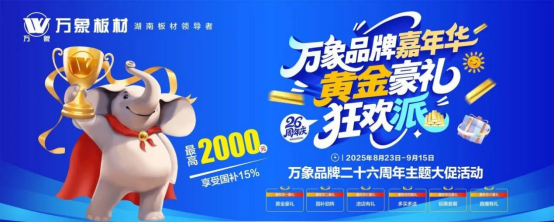 廿六載風雨同行,感恩每一份不離不棄的信賴!為回饋消費者始終如一的關注與厚愛,萬象品牌26周年慶特別打造“萬象品牌嘉年華?黃金豪禮狂歡派”主題大促——8月23日至9月15日,活動火熱啟幕!誠邀您親臨線下門店,解鎖26周年專屬優(yōu)惠與驚喜福利,在這場周年狂歡里,共赴品質之約,收獲滿滿誠意。