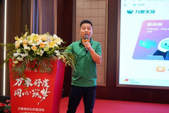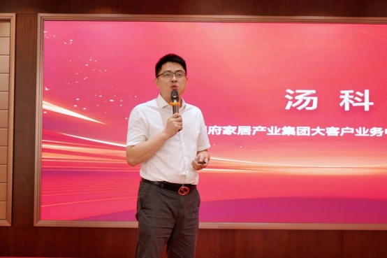 旺德府家居集團大客戶業(yè)務中心總經(jīng)理湯科先生,圍繞政策與產(chǎn)品賦能體系進行詳細解讀。在闡述品牌及核心產(chǎn)品競爭優(yōu)勢的同時,重點強調(diào)板材+輔材的產(chǎn)品推廣布局,明確以此助力品牌與合作伙伴共同開拓高端家居市場。