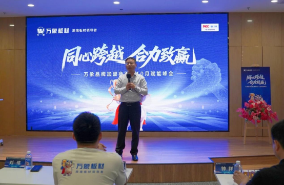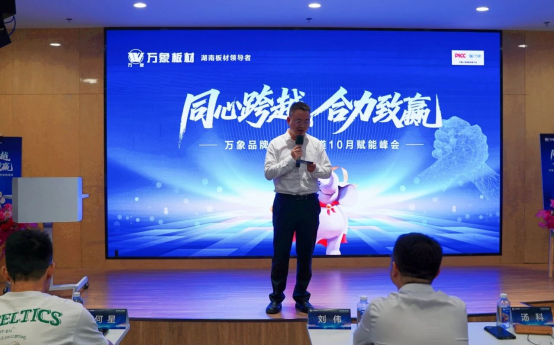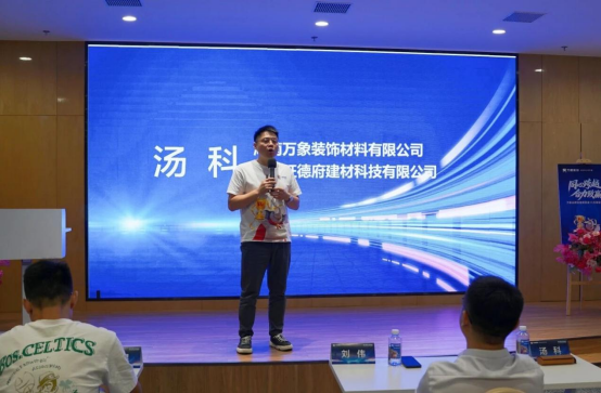 湖南萬(wàn)象裝飾材料有限公司、湖南旺德府建材科技有限公司總經(jīng)理湯科先生,以“模式賦能產(chǎn)品價(jià)值”為核心展開分享。他不僅系統(tǒng)闡述了萬(wàn)象品牌“直連客戶、嚴(yán)控品質(zhì)、高效服務(wù)”的三大優(yōu)勢(shì),更通過深度解讀圓弧產(chǎn)品、金鉆龍骨、石膏板2代三大新產(chǎn)品,讓核心加盟商直觀感受到品牌強(qiáng)勁的產(chǎn)品力。同時(shí),他進(jìn)一步明確了集團(tuán)“高端板材+高端輔材+高端衣柜定制”的戰(zhàn)略定位,為品牌發(fā)展方向錨定核心。