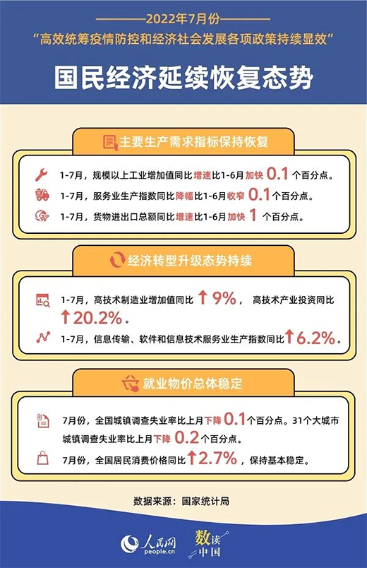 7月份,隨著穩(wěn)經(jīng)濟(jì)一攬子政策進(jìn)一步落實和顯效,我國經(jīng)濟(jì)繼續(xù)修復(fù),主要指標(biāo)基本穩(wěn)定。