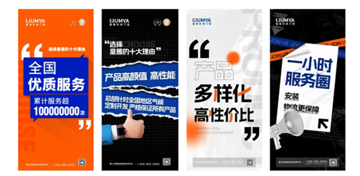 在設(shè)計方面,皇雅依據(jù)VI/SI標準賦能門店門頭設(shè)計、燈箱廣告設(shè)計、宣傳海報設(shè)計、展廳40/60/80方規(guī)劃設(shè)計,滿足對店面設(shè)計的多樣化需求。