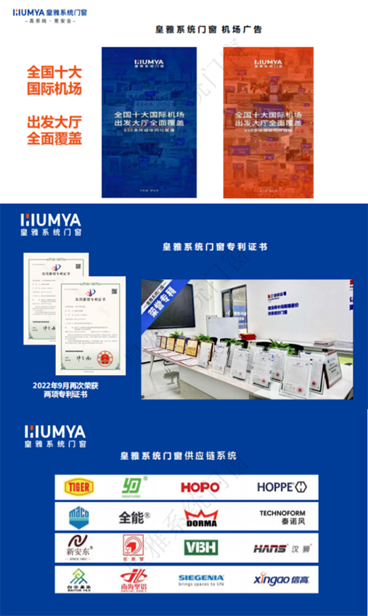 皇雅系統(tǒng)門窗是一線馳名品牌·央視推薦,在“十大品牌”評選活動中榮獲“中國十大門窗品牌”、“中國十大家裝門窗品牌”、“中國十大鋁合金門窗品牌”等業(yè)內(nèi)權(quán)威殊榮。擁有13項發(fā)明專利和25項實用新型專利證書,是榮譽更是責任,堅持做真系統(tǒng),更安全的系統(tǒng)好門窗,全國累計服務(wù)超100000000次,值得信賴!