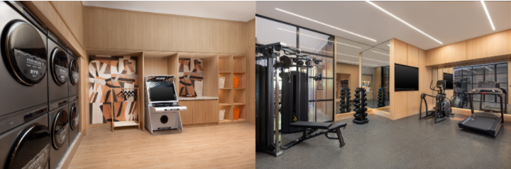 暢享“智慧”家居也是Atwell筑格酒店的重要特色之一。酒店配備全屋智能操控系統(tǒng),支持語音控制與一鍵客服,賓客可輕松調(diào)節(jié)溫度與燈光,使用智能家電,并配備隨心調(diào)節(jié)高低的升降桌以滿足不同場景需求。浴室設(shè)有熱毛巾架,電視支持智能投屏,賓客可獲得更順暢的居停體驗(yàn)。酒店還設(shè)有“洗躍”健身洗衣空間,配有座位、游戲機(jī)等設(shè)施,打造具備洗衣和健身功能的社交休閑區(qū),讓入住體驗(yàn)更加豐富自在。