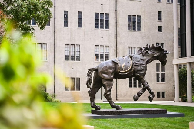 展覽之旅在室外展區(qū)圓滿落幕,兩件大型作品為達(dá)利畢生關(guān)注的“時(shí)間”主題添上濃墨重彩的一筆。高達(dá)4.2米的《時(shí)間之舞I》雕塑傲然矗立,將藝術(shù)家標(biāo)志性的“柔軟時(shí)鐘”意象推向極致,成為外灘全新的藝術(shù)地標(biāo)?!侗池?fù)時(shí)間的馬》則以沉靜之姿,講述時(shí)間的另一重?cái)⑹隆?/p>